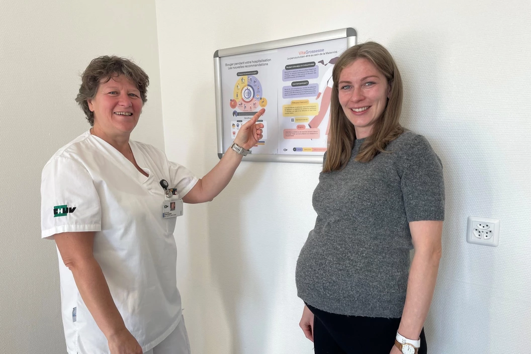 « Certaines patientes mangeaient assises dans leur lit ou sonnaient pour éviter de se déplacer. Communiquer davantage sur ces recommandations leur permet de savoir qu’elles peuvent rester actives et que ce n’est pas dangereux, ni pour elles ni pour leur bébé » explique Delphine Yalcinkaya, infirmière cheffe d’unité.